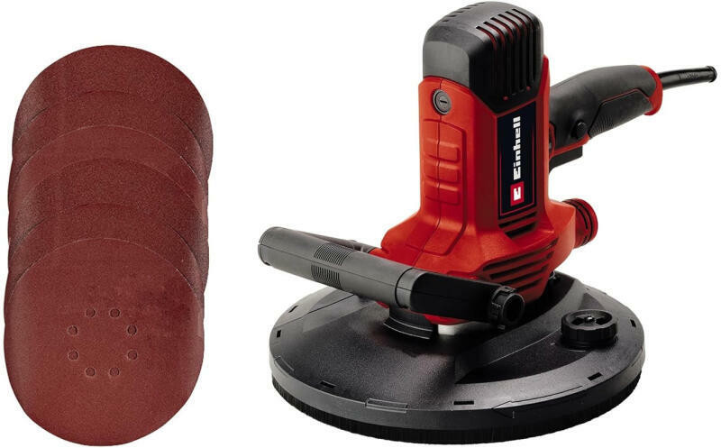 Az 1220 watt teljesítményű Einhell TC-DWS 225 gipszkartoncsiszoló nélkülözhetetlen segítőtárs az építkezéseken és a felújítási munkák során. A 4 méter hosszú tápkábel lehetővé teszi, hogy az egész helyiségben átcsiszolja a gipszkartont, eltávolítsa a tömítőanyagot vagy a tapétamaradványokat. A lágyindítással kombinált fordulatszám-szabályozó elektronika lehetővé teszi, hogy az 1500 – 2300 fordulat/perc sebességgel üzemelő csiszolótányér forgását mindig az alkalmazási terület vagy az anyag tulajdonságainak megfelelően állíthassa be. A rögzíthető kapcsológombot használva folyamatosan is üzemeltetheti a készüléket. A Softgrip borítású fő- és pótfogantyúk rendkívül kényelmes és biztonságos munkavégzést tesznek lehetővé. Az integrált porelszívó funkció segít a munkaterület tisztán tartásában. A hevederrel ellátott porzsákot könnyedén csatlakoztatja a 35 mm átmérőjű adapterre rögzített 2 méteres elszívótömlőhöz. A kefegyűrűvédő levehető a rugós felfüggesztésű csiszolótányérról, ami így optimálisan felfekszik a megmunkálandó felületre. A gyári csomagolás 6 darab különböző szemcseméretű (P60, P80, P120, 2-2x) csiszolópapírt tartalmaz; a tépőzár segítségével gyorsan és egyszerűen a csiszolótányérra rögzítheti ezeket.