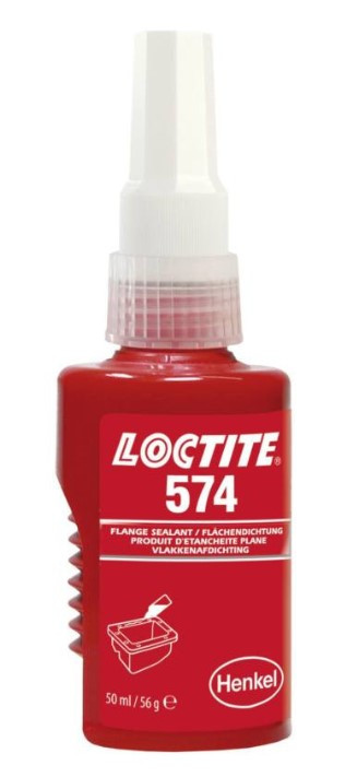 LOCTITE® 574 jellemző felhasználási területe jól illeszkedő merev fém felületek és karimák tömítése. Anaerob felülettömítő termék, mely a szorosan illeszkedő fém felületek között, levegőtől elzárva köt meg. A karimák összeszerelési után kis nyomással szemben ellenáll. Jellemző felhasználási területe merev fém felületek tömítése. A LOCTITE 574 termék tixotróp tulajdonsága miatt a folyékony termék felvitele után kevésbé hajlamos a csepegésre. Kiváló glikol-, olaj- és vízállósággal rendelkező termék.