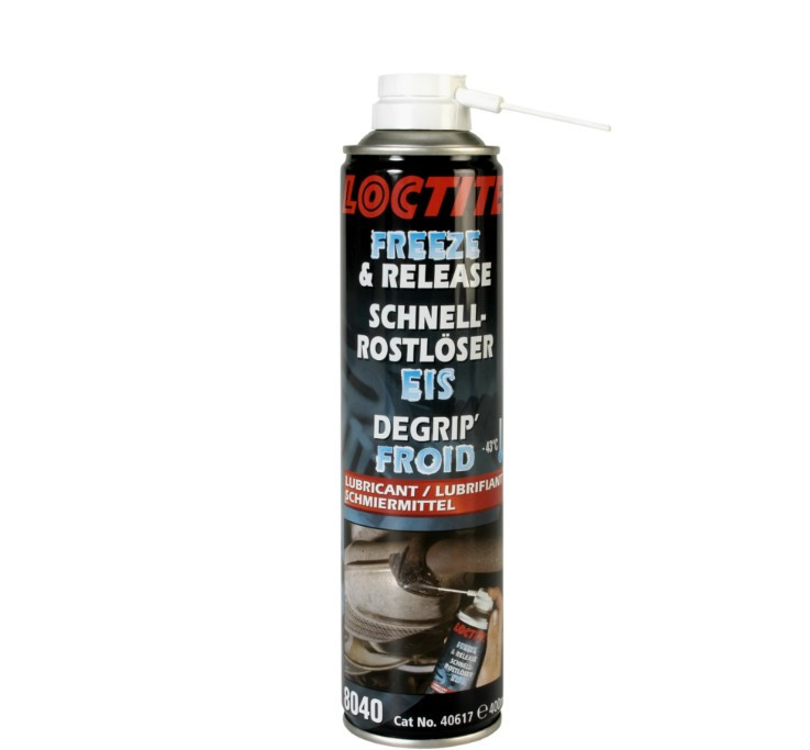 A LOCTITE® LB 8040 egy speciális, ásványolaj bázisú termék az összerozsdásodott, korrodált, berágódott alkatrészek meglazítása. Az alkatrészek hirtelen fagyasztása -43°C hőmérsékletre mikroszkopikus méretű repedéseket okoz a rozsdarétegben. Ez lehetővé teszi, hogy a kenőanyag kapilláris tulajdonsága révén közvetlenül a rozsdához hatoljon. A meglazított alkatrészeken a termék egy vékony bevonatot képez, mely kenést biztosít és megvédi a felületet a további korróziótól.