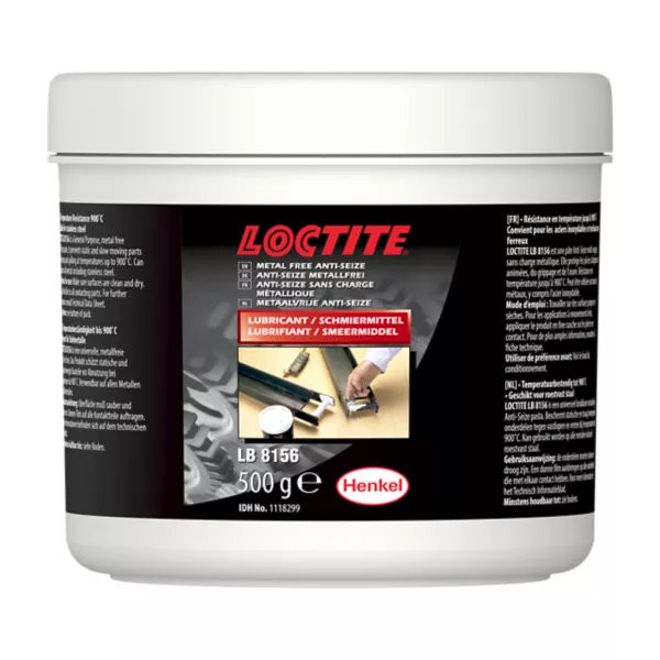 A LOCTITE® LB 8156 egy fehér megszorulásgátló kenőanyag ásványolaj, lítiumszappan és kerámia összetevőkkel, amelyet akár +900°C hőmérsékletnek kitett felületek védelmére terveztek. Használható magas hőmérséklet mellett, alacsony fordulatszámon, nagy terhelésnek kitett felületeken. Jellemzően -30 – +900°C üzemi hőmérséklet tartományban alkalmazzák.