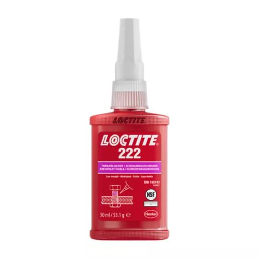 A LOCTITE® 222 egy kis szilárdságú csavarrögzítő termék, alkalmazása beállító és rögzítő csavarok, süllyesztett fejű csavarok kis szilárdságú rögzítéséhez javasolt. Emellett kis szilárdságú fémeken, például alumíniumon és sárgarézen, melyek szétszerelés közben sérülhetnek, eltörhetnek. A termék minden felületen megköt, beleértve a passzív felületeket is, mint például rozsdamentes acél, alumínium, bevonattal ellátott felületek. Bizonyítottan alkalmazható ipari olajokkal enyhén szennyezett felületeken, mint pl. motorolaj, korrózióvédő olaj, vágóolaj.