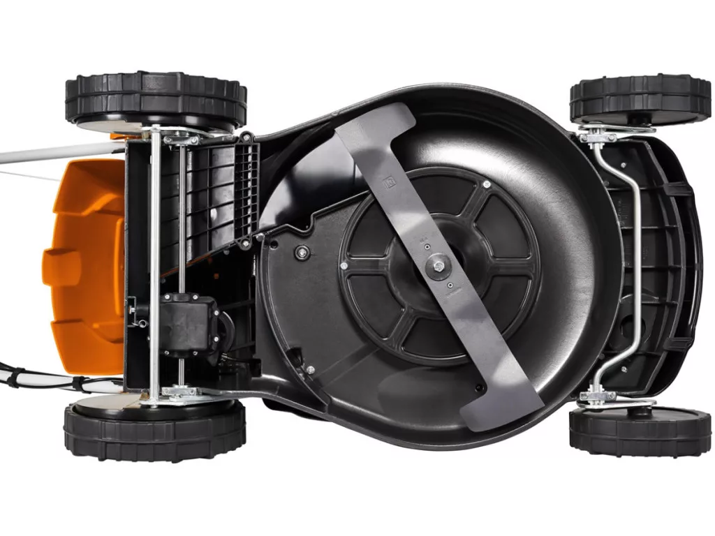 A nagy szilárdságú mulcsozó kés és a gépváz aerodinamikai kialakítása optimális vágást és tökéletes zsáktöltést biztosít, miközben – a bevont golyóscsapágyakkal szerelt kerekeknek köszönhetően – mindenféle terepen garantált a gép előrehaladása.