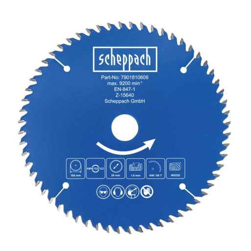 Scheppach TCT fűrészlap (165 x 20 x 1,6 mm, 60 fog) BC-HCS165-X / C-HCS165-X-hez (7901810608)