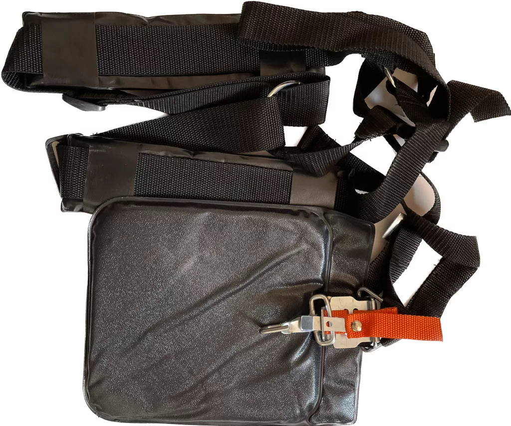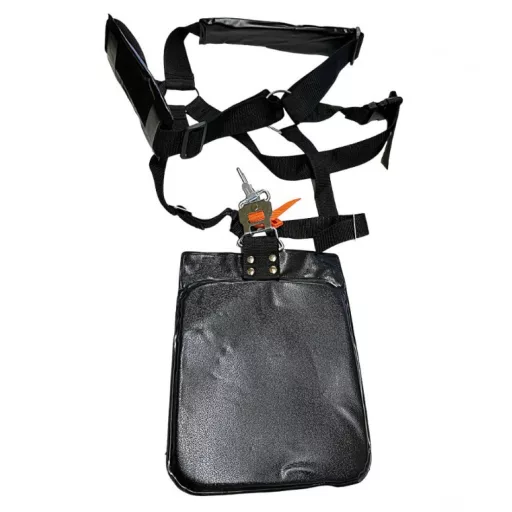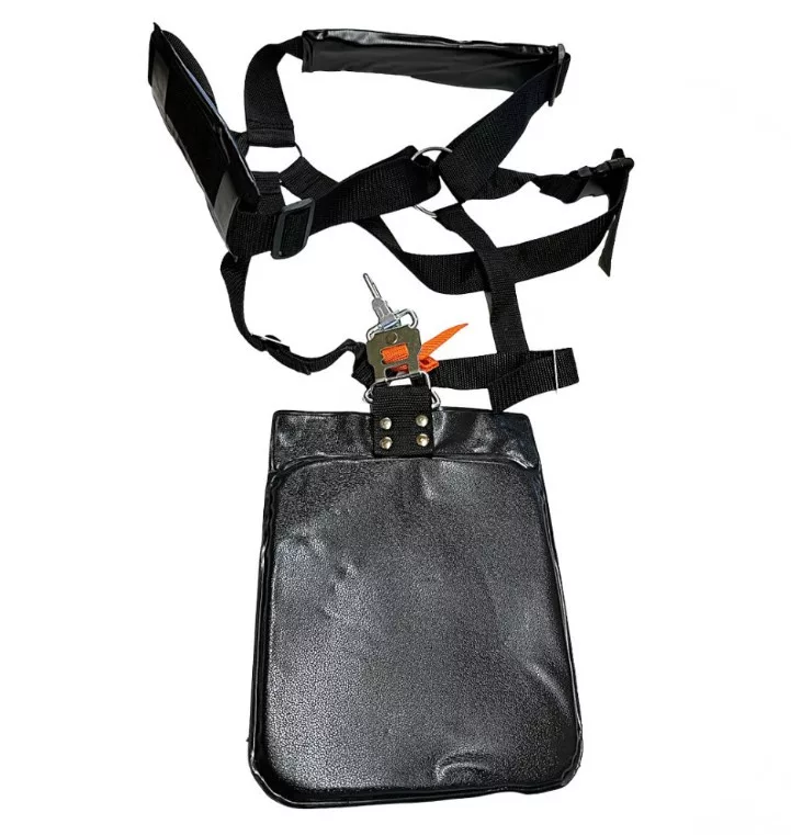 Bozótvágó kétvállas, párnázott heveder, lábvédővel.
