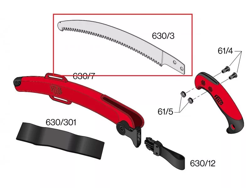Tartalék fűrészlap/penge a Felco 630 típushoz. Teljes hossz 400 mm Súly: 105 g