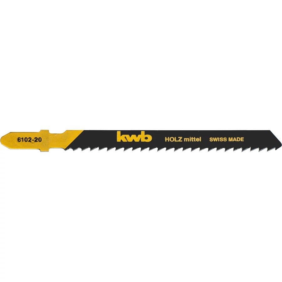 KWB EXPERT HCS JIGSAW BLADE magas széntartalmú acél szúrófűrészlap, a speciálisan beállított és köszörült fogak különösen alkalmas 50 mm vastagságig puhafa, blokklemez, forgácslap és farostlemez vágásához T-befogás