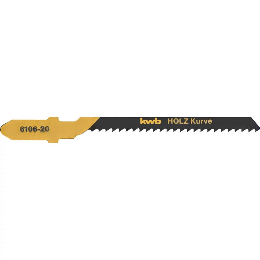 KWB EXPERT HCS JIGSAW BLADE magas széntartalmú acél szúrófűrészlap, a speciálisan beállított és köszörült fogak különösen alkalmas 50 mm vastagságig puhafa, blokklemez, forgácslap és farostlemez vágásához T-befogás