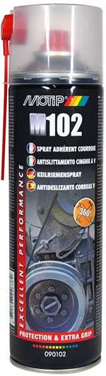 Kiváló minőségű spray, az elhasználódott (megnyúlt) ékszíjak eredeti állapotának visszaállítására és az ékszíjak csúszásának és nyikorgásának megelőzésére. Az anyagot az ékszíj futó felületére kell szórni, majd pár percig várni, míg kifejti hatását. Rendkívül jó tapadásának, rugalmasságának és tartós hatásának köszönhetően alkalmas az ékszíj élettartamának megnövelésére.