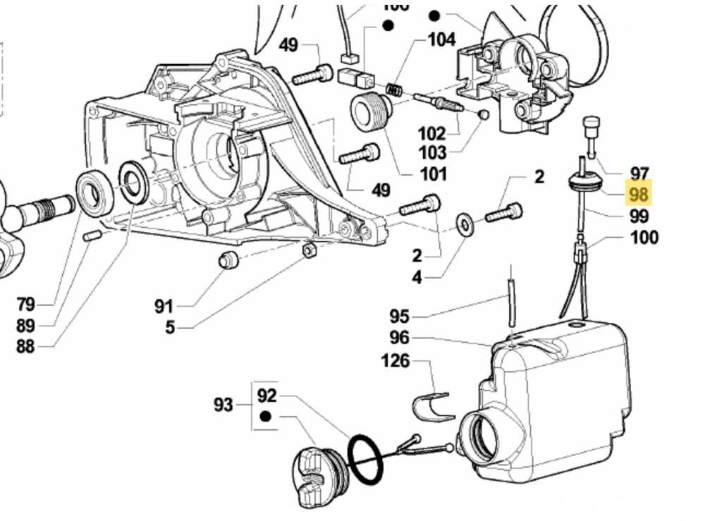 MTD GCS46/40C típusú láncfűrészhez üzemanyagtank tömítő gumi. Teljes átmérő:23,5mm Belső átmérő:19,6mm Magasság:10mm