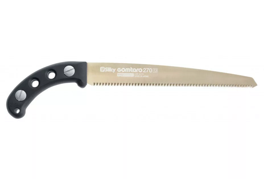 A Gomtaro egyenes pengéje még tisztább és pontosabb vágást ad, mint egy ívelt penge. Továbbá az egyenes pengét könnyebb használni szűk helyeken és a talaj közelében. Ennek a húzófűrésznek a finom fogai ideálisak száraz fához, például bükk, tölgy és gyümölcsfákhoz. A finom fogak könnyedén megragadják a fát, és rendkívül sima vágásnyomot hagynak maguk után, amely könnyen visszanő. A fa hálás lesz! A borda még kisebb, mint a nagy fogú Gomtaro, kevesebb ellenállást okozva fűrészelés közben, és kevesebb sérült fasejt marad. A finom fogakkal rendelkező Gomtaro a választás, ha a kivitelezés fontosabb, mint a sebesség. Ha először használja a Silkyt, akkor fontolja meg ezt a borotvaéles fűrészt!