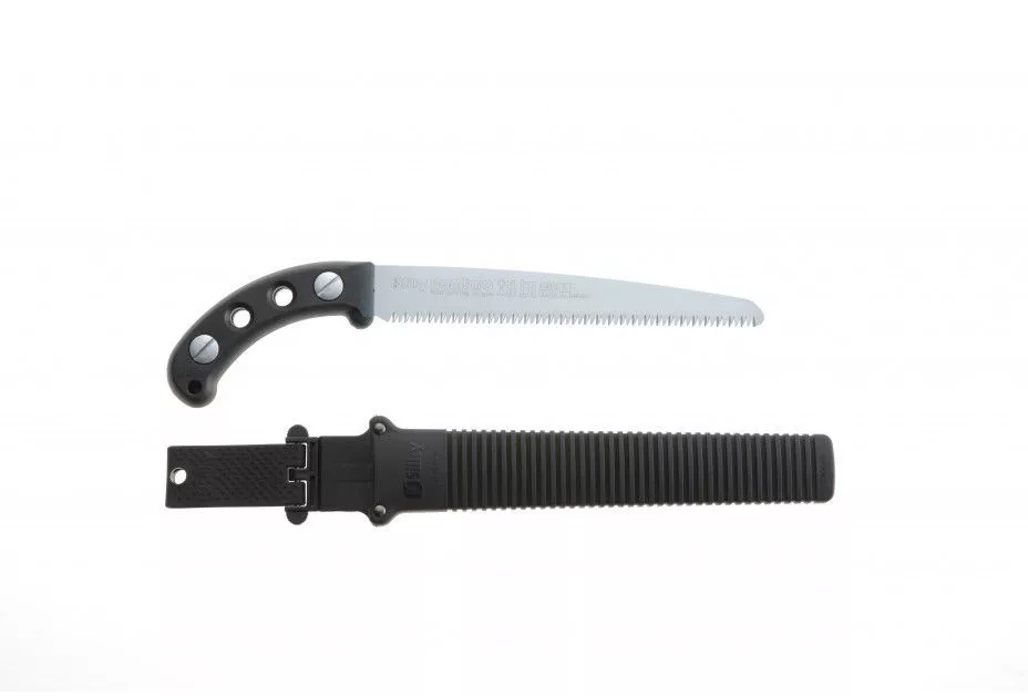 A penge hatékonyságának megőrzése érdekében tisztán kell tartani. A gyanta olívaolajban oldódik, amely környezetbarát módszer a penge karbantartására. Az agresszívebb folyadékok károsíthatják a fogantyú gumi anyagát. Ha nem használja a fűrészt, ellenőrizze, hogy mindig száraz-e. Tárolja a fűrészt a hüvelyében, száraz helyen. A Gomtaro Root fa gyökerekhez alkalmas, és könnyű, polipropilén tokkal rendelkezik, levehető övtartóval. A hüvely 2 hengerrel rendelkezik, amelyek megakadályozzák a fogak károsodását a tokban. Az alja nagy lyukkal van ellátva, amely elvezeti a nedvességet és a fűrészport. Különkiadás a Gomtaro családon belül. A Gomtaro Root-ot kizárólag durva körülmények között végzett metszési tevékenységekre tervezték. Ennek a húzófűrésznek elengedhetetlen a fa gyökereinek metszése, például fák és cserjék átültetése vagy eltávolítása, a túl gyorsan növő fák visszatartása, vagy a kerítéshez túl közel növő unalmas fa elaprózása. Fát ásva gyakran találkozik olyan vastag gyökerekkel, hogy ásóval át ne szúrja. A Gomtaro Root-tal már nincsenek akadályok! A kettős fogak megkeményedése miatt a Gomtaro Root nagyon magas kopásállósággal rendelkezik, még a homokos környezetben történő gyakori használat során is. Mivel a penge tele van, ez a fűrész kivételesen stabilnak tűnik. A gumiból öntött fogantyú kényelmesen érzi magát és elnyeli a rezgéseket. Észre fogja venni, hogy az alsó karja és a fűrész tökéletesen kiegyensúlyozott. A hüvelyt úgy tervezték meg, hogy a fűrész ne essen ki belőle, de szükség esetén mégis csak egy kézzel lehúzható. A rendelkezésre álló lábszíjakkal a Gomtaro Root-ot az alsó lábához rögzítheti, hogy a fűrész mindig karnyújtásnyira legyen.