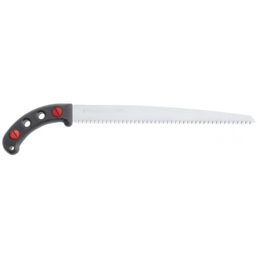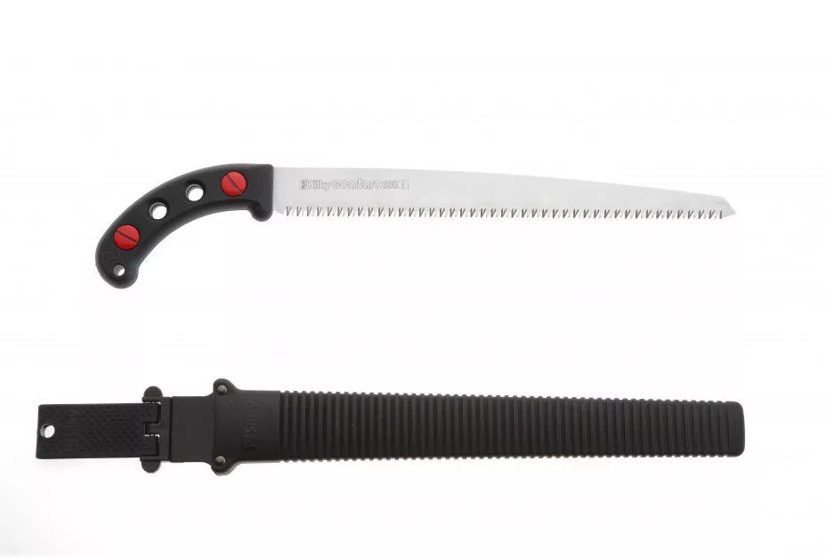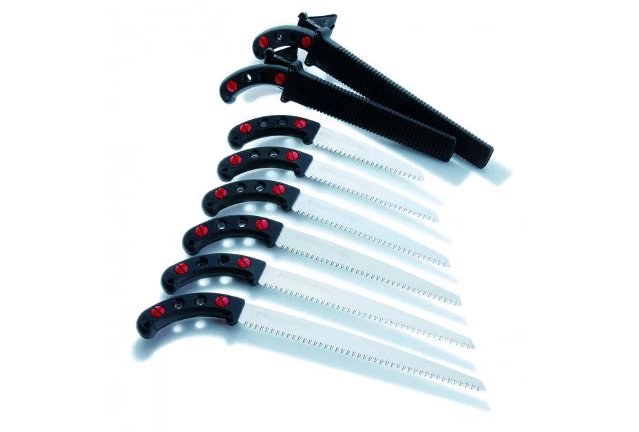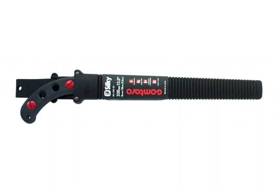 A Gomtaro metszőfűrész elengedhetetlen része a berendezésének, és a felhasználó első választása a formatív metszéshez a fa növekedésének korai éveiben. Az egyenes penge még tisztább és pontosabb vágást ad, mint egy ívelt penge. A sima favágás, amelyet ez a húzófűrész hagy maga után, könnyen megnő. A fa hálás lesz! Az egyenes penge könnyebben kezelhető szűk helyeken és a talaj közelében. A Gomtaro-t szakképzett arboristák körében ajánlják, amikor eltávolítják a fa koronáját. Vágási vágáshoz az egyenes penge segíti a csuklófa kezelését, miközben megtartja az egyenes hátsó vágást. Ha először használja a Selymet, akkor vegye figyelembe ezt a borotvaéles fűrészt! A famászás fizikai gyakorlása fűrészt igényel, amely megkönnyíti a metszést. Joggal, a szakemberek a Selymet választják kézifűrészként. A fűrészelés a Gomtaro-val minimális erőfeszítést igényel és olyan simán megy, hogy felesleges láncfűrészt felgyújtani. Ezenkívül kompakt csere van kéznél, amikor nem áll rendelkezésre láncfűrész, vagy amikor csak egy kezet használhat. A gumiból öntött fogantyú kényelmesen a kézben fekszik és elnyeli a rezgéseket. Rájössz, hogy az alsó kar és a fűrész tökéletesen kiegyensúlyozott. Mászás közben nem mindig mozog a legkényelmesebb helyzetben. Akkor sem hagyja cserben a Gomtaro. A hüvelyt úgy tervezték, hogy minden helyzetben megtartsa a fűrészt, de szükség esetén csak egy kézzel húzhatja ki a fűrészt. Töltse ki Gomtaróját a rendelkezésre álló lábszíjakkal, és a fűrész mindig karnyújtásnyira lesz. A nagyméretű fogakkal ellátott Gomtaro friss fához alkalmas, és hat késhosszban kapható: 180 - 210 - 240 - 270 - 300 és 330 mm. A finom fogak tapasztalt fához alkalmasak, és négy késhosszban kaphatók: 240 - 270 - 300 és 330 mm. A hasonló hosszúságú pengék felcserélhetők, így egy többcélú fűrész jön létre. A Gomtaro sorozat minden fűrészéhez könnyű, polipropilén hüvely tartozik, levehető övtartóval. A hüvely két hengerrel van ellátva, hogy az éles fogak ne károsítsák a tokot. Az alsó rész lyukkal van ellátva, amely elvezeti a nedvességet és a fűrészport. A penge hatékonyságának megőrzése érdekében tisztán kell tartani. A gyanta olívaolajban oldódik, amely hatékony és környezetbarát módszer a penge karbantartására. Az agresszívebb folyadékok károsíthatják a fogantyú gumit. Ha nem használja a fűrészt, ellenőrizze, hogy mindig száraz-e. Tárolja a fűrészt a hüvelyében, száraz helyen.