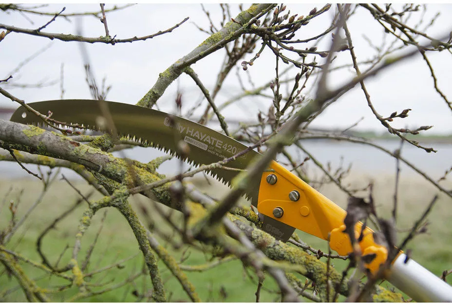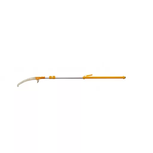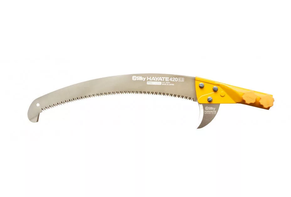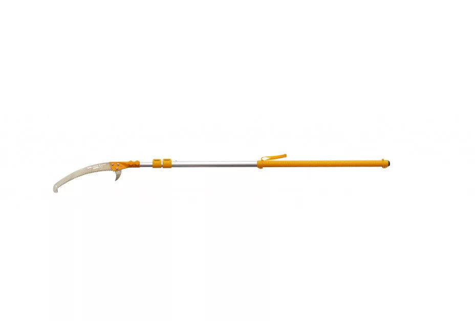 Igazi, nagy teherbírású eszköz kifejezetten szakemberek számára. A Hayate a Hayauchinál nehezebb konstrukcióból áll, ami még erőteljesebbé teszi ezt a teleszkópos rúdfűrészt. És igen, emiatt a Hayate valamivel többet nyomhat, de még mindig nagyon könnyen kezelhető. A Silky egyedi Mirai-Me fogakkal ellátott penge speciális fémötvözetből áll, így a penge tartós és hihetetlenül erős. A Hayate segítségével olyan helyekre lehet eljutni, ahová alig lehet létrával. Miközben szilárdan a földön áll, néhány húzással csak a legvastagabb ágakat vágja át. A Hayate sebessége összehasonlítható egy motorfűrésszel. A pengének annyi ereje van, hogy a fűrészelés aligha érzi magát gyakorlatnak. Csak hagyja, hogy a fűrész súlya elvégezze a munkát! Mivel az alumínium oszlop ovális alakú, nagyon pontosan szabályozhatja a penge irányát, amire nagy magasságban történő metszéskor szüksége lesz. Sőt, ez a forma nagyobb erőt és merevséget biztosít a rúdfűrész teljes hosszában, és minimálisra csökkenti a hajlítást. A penge két sarka együttműködik az optimális metszési eredmény érdekében. A felső sarló segít abban, hogy a penge a fűrészelésnél maradjon. A felső sarlóval kis gallyakat is levághat a törzsről, vagy kis (elhalt) ágakat húzhat a fáról. Az alsó sarlóval levághatja a kérget, hogy ez ne szakadjon le a törzsről, amikor az ág leesik. Az alsó sarló leválasztható, lehetővé téve az erősen elágazó erdők metszését. A két reteszelőszerkezet (nyomógombok és karok) együtt hozzák létre a legbiztonságosabb és legstabilabb reteszt az előnyben részesített pólushosszon. A legalacsonyabb pólusrész gumival van bevonva, így nedves körülmények között is kényelmes és biztonságos a tapadás. Az alsó lökhárító megvédi az oszlopot az ütközéstől vagy a lökéstől. Mindig gondoljon a saját biztonságára: ügyeljen arra, hogy biztonságos távolságban álljon a leeső ágaktól, és viseljen védősisakot és szemvédőt. A Hayate név a „kemény szél” hagyományos japán neve. És ez a fűrész pontosan így mozog a fák között! A Hayate 4 meghosszabbított hosszúságban kapható: 3800 - 5000 - 6100 és 7700 mm. Ne válasszon feleslegesen hosszú rúdfűrészt, fontos a megfelelő hosszúság kiválasztása, amelyre maximálisan szüksége lesz. A Hayate testreszabott polipropilén borítással kerül kiszállításra, amely megvédi a pengét. A fedél kényelmes beépített fogantyúval és bevágással rendelkezik, hogy a rúdfűrész felakasztható legyen. Mint minden selymes fűrésznél, a fogak is sokáig élesek maradnak. Ha szükségesnek tartják, a Hayate fogai selymes reszelővel élesíthetők . A penge hatékonyságának megőrzése érdekében tisztán kell tartani. A gyanta olívaolajban oldódik, amely hatékony és környezetbarát módszer a penge fenntartására. Ha nem használja a fűrészt, a pólusok visszahúzása előtt ellenőrizze, hogy teljesen száraz-e. Csúsztassa a fedelet a pengére, és tárolja az oszlopfűrészt száraz helyen. Ne felejtse el gyakran ellenőrizni, hogy a penge csavarjai továbbra is megfelelően vannak-e meghúzva.
