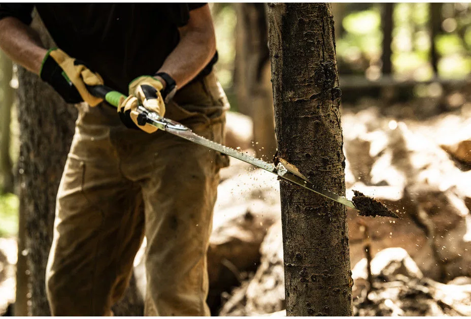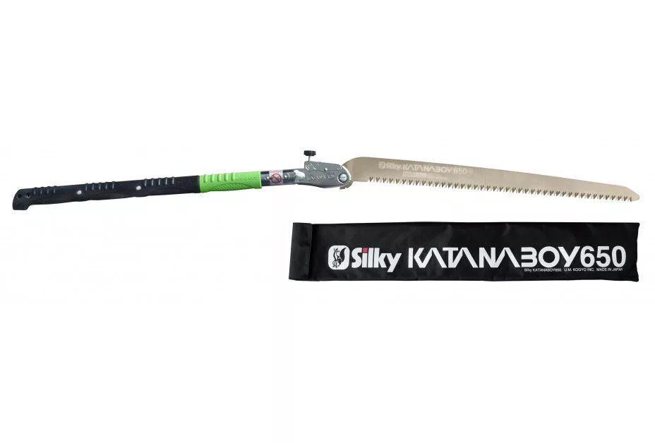 Ennek az erőteljes húzófűrésznek a pengéje nem kevesebb, mint 65 cm, amellyel könnyedén átfűrészelhet legalább 30 cm fatörzseket. Éppen ezért a Katanaboy kényelmesen összehasonlítható egy láncfűrésszel, de akkor olaj, benzin, zaj és szennyezés nélkül. Sőt, ez a fűrész könnyű és kompakt ahhoz, hogy magával vihesse a hátizsákba. Ez az ideális fűrész a nehezebb munkákhoz: nyomvonal-karbantartás, tűzifa fűrészelése vagy menedéképítés az erdei kemping során. Meg fog lepődni azon, hogy mennyi energia szükséges az eredmények eléréséhez. És titokban csak fantasztikus érzést kelt, ha ezzel a fűrésszel fűrészelsz! A Katanaboy valóban mindent képes kezelni: nedves, száraz, korhadt vagy kemény fát. Az erős penge agresszív kialakítású, és sokat tud állni. A fogakat egyedülálló módon a pengébe őrölték, és sokáig élesek maradnak. A reteszelő gomb segítségével gyorsan és egyszerűen kibontsa és összehajthatja ezt a fűrészt. Biztonsági okokból ez a folyamat két fázisban történik: először a fűrészt félig lehajtható, majd (vigyázzon az ujjaival!) A fűrész teljesen összecsukható. Az ergonomikus gumi fogantyú elnyeli a rezgéseket. A Katanaboy két kézzel történő használatával a vállak lazábbak, ami fantasztikusan hat a fűrészerőre. A Katanaboy-t a szamuráj „Katana” kardjáról nevezték el. A Katanaboy 3 különböző változatban kapható: a Katanaboy 500-5, a Katanaboy 650-4 és a Katanaboy 1000-5-2,5. Mint minden selymes fűrésznél, a fogak is sokáig élesek maradnak. Ha szükségesnek tartják, a Katanaboy fogait egy Selymes reszelővel lehet élesíteni. A Katanaboy erős, nejlon válltáskával rendelkezik, tépőzárral. A táskában van egy extra zseb a pengéhez. A penge hatékonyságának megőrzése érdekében tisztán kell tartani. A gyanta olívaolajban oldódik, amely hatékony és környezetbarát módszer a penge karbantartására. Az agresszívebb folyadékok károsíthatják a fogantyú gumi anyagát. Ha nem használja a fűrészt, ellenőrizze, hogy mindig száraz-e. Tárolja a fűrészt száraz helyen, lehetőleg a nejlon válltáskában.