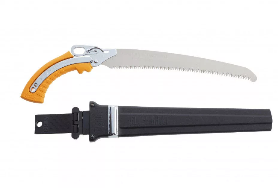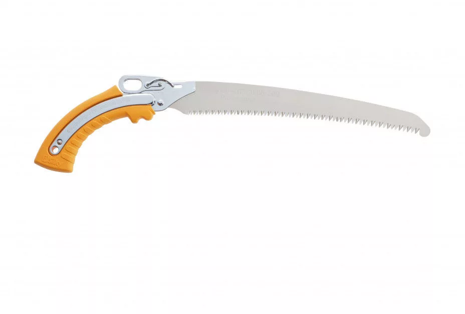Ívelt pengével, progresszív fogakkal és nikkel bevonattal. A penge hatékonyságának megőrzése érdekében tisztán kell tartani. A gyanta olívaolajban oldódik, amely hatékony és környezetbarát módszer a penge karbantartására. Az agresszívebb folyadékok károsíthatják a fogantyú gumi anyagát. Ha nem használja a fűrészt, ellenőrizze, hogy mindig száraz-e. Tárolja a fűrészt a hüvelyében, száraz helyen.