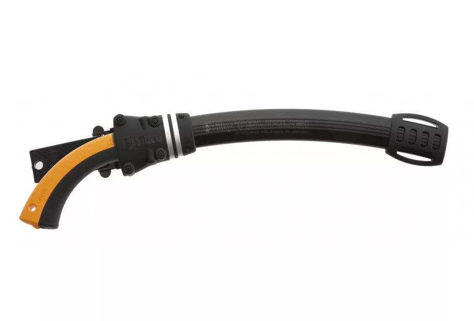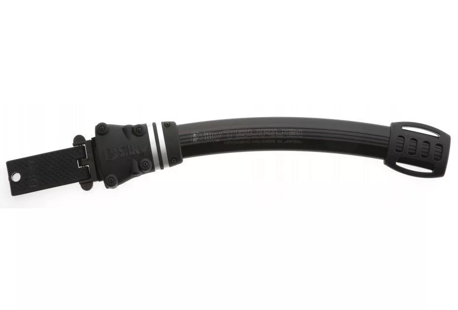 A Tsurugi ívelt pengéje és a revolver stílusú fogantyúja kombinációja ideális a váll felett és a térd alatt végzett munkához. A karod, a csuklód és a kezed természetes helyzetben tartásával is könnyedén vághatsz az ág tetején. Ezenkívül gyorsan észreveszi, hogy mikor érte el a fűrész vágóképességének határait, így még a legnehezebb körülmények között is hatékonyan dolgozhat. Ennek a fűrésznek a keskeny pengéjével precízen tud dolgozni a legsűrűbben benőtt helyeken, anélkül, hogy károsítaná a környező ágakat. Az erőteljes pengének nagy a merevsége és borotvaéles, agresszív fogazata van, amely sima felületet hagy a vágás után. A kényelmes Genki revolverfogantyúnak nincsenek csavarjai és csak két gumirészből áll, amelyek tökéletesen befogják az acélt. Az alumínium hüvelyt úgy tervezték meg, hogy a fűrész ne essen ki belőle, de mégis csak egy kézzel lehúzható. A hüvelyt jobb- és balkezesek egyaránt könnyedén használhatják.