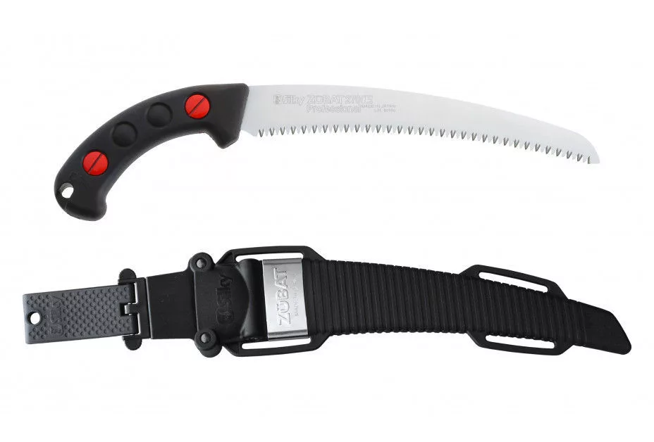 A Zübat minden önbecsülõ arborista alapfelszerelésének része. Az arboristák kör��ben kétségkívül a világon a legszélesebb körben használt kézifűrész. Nem meglepő, hogy a Zübat minden, amit kívánhat egy metszőfűrészben. Sokoldalú, erőteljes húzófűrész, amely mind a precíziós metszéshez szűkebb helyeken, mind a nagyobb eltávolításokhoz használható. Az agresszívan ívelt penge tökéletes alakja a Silky egyedi fogaival kombinálva megadja a fának szükséges sebességet, erőt és pontosságot. Könnyedén gyakrabban hagyhatja láncfűrészét a földön, mivel ez a kézifűrész mindenütt öröm vele dolgozni. A fogak még a gyakori használat után is sokáig élesek maradnak, sima fakivágást hagyva maguk után, amely könnyen megnő. Ha vállmagasság felett és térd alatt dolgozik, akkor is görbe pengével láthatja az ág tetejét, miközben a karja, a csuklója és a keze természetes helyzetben marad. Ez hatékony munkavégzést tesz lehetővé a legnehezebb körülmények között is. A penge szélén lévő hegy tartja a fűrészt a kanyarban, így nagyobb irányítást biztosít Önnek. A penge tele van, így ez a stabil fűrész tökéletesen kiegyensúlyozott. A gumival öntött fogantyú kényelmesen a kézben fekszik, és elnyeli az összes rezgést. A Zübat név abból a hangból származik, amelyet egy szamuráj kard ad ki, amikor célba ér. A fűrész felhasználói tudni fogják, miért. A nagy fogakkal ellátott Zübat friss faanyaghoz alkalmas, és öt késhosszban kapható: 240 - 270 - 300 - 330 és 390 mm. A Zübat 330 finom fogakkal és extra nagy fogakkal is kapható. Tudta, hogy a penge felcserélhető a Zübat teleszkópos rúdfűrészével? Ez a remek funkció lehetővé teszi, hogy a fűrészt kézifűrésszel és rúdfűrésszel használja! Minden Zübat metszőfűrészhez könnyű, polipropilén hüvely tartozik, levehető övtartóval. A hüvely két hengerrel van ellátva, hogy az éles fogak ne károsítsák a tokot. Az alsó rész lyukkal van ellátva, amely elvezeti a nedvességet és a fűrészport. A penge hatékonyságának megőrzése érdekében tisztán kell tartani. A gyanta olívaolajban oldódik, amely hatékony és környezetbarát módszer a penge fenntartására. Az agresszívebb folyadékok károsíthatják a fogantyú gumi anyagát. Ha nem használja a fűrészt, ellenőrizze, hogy mindig száraz-e. Tárolja a fűrészt a hüvelyében, száraz helyen.
